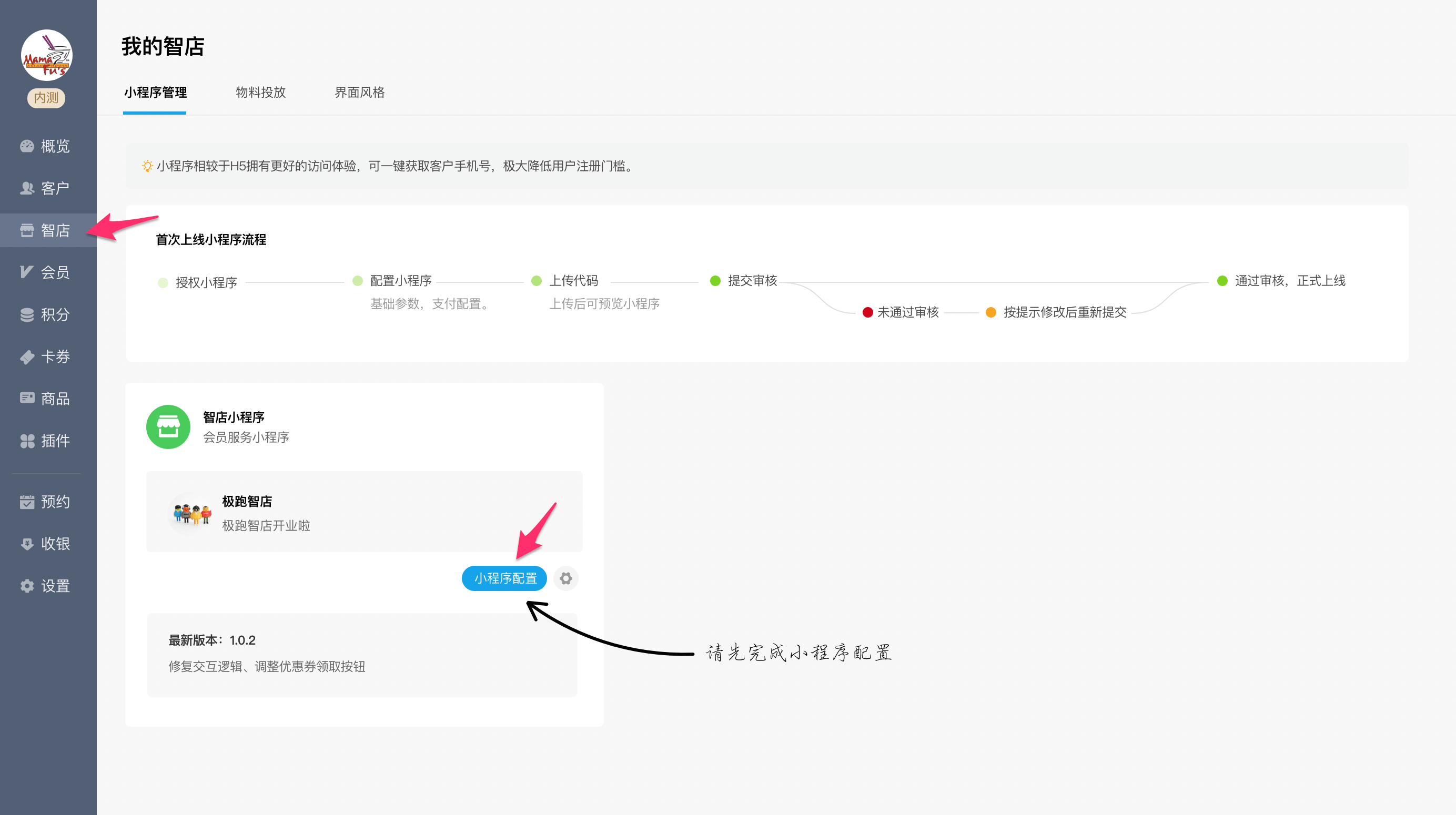 在智店 > 小程序管理 中找到入口并完成授权绑定。