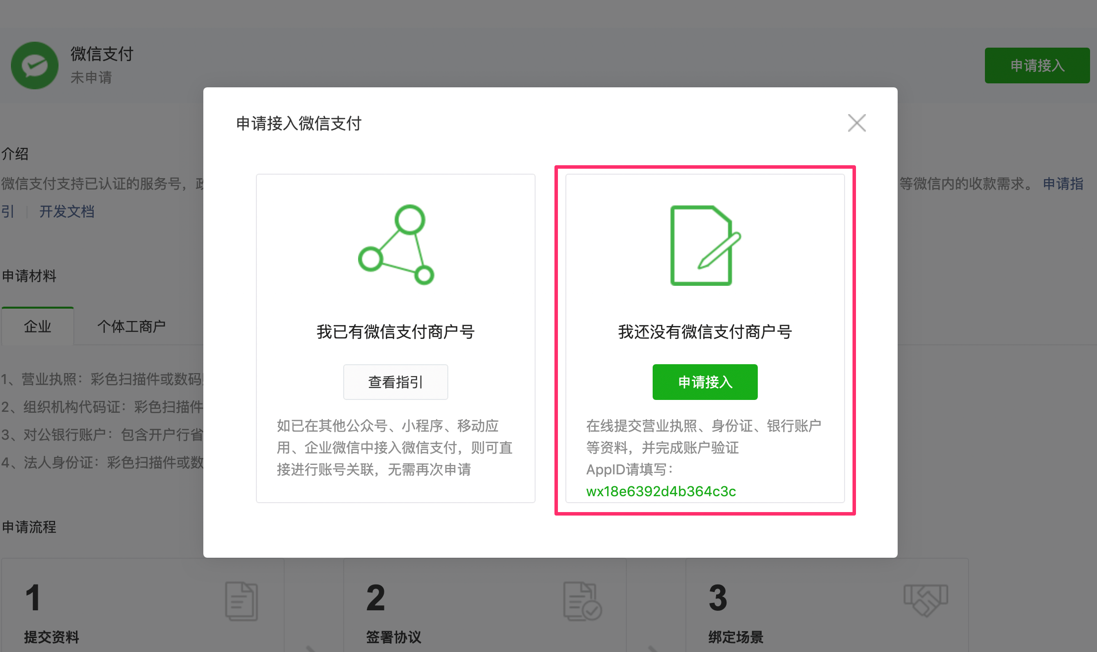 如之前未申请过微信支付,那么需 新开通微信支付