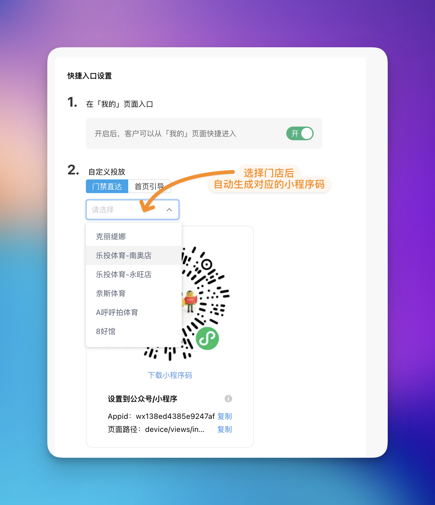 对于多门店场景,用户希望扫码每个门店的门禁码,自动到达当前门店。
