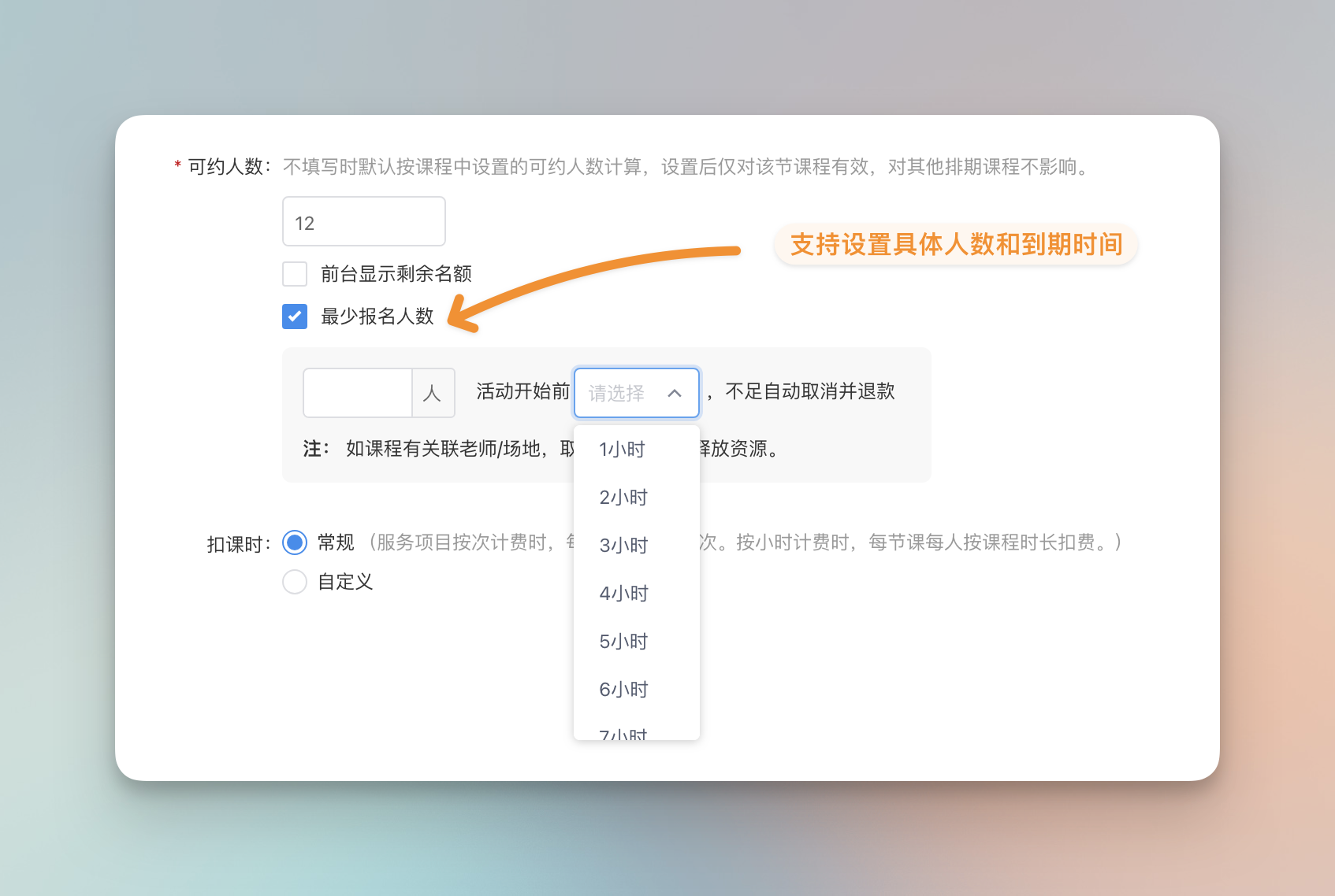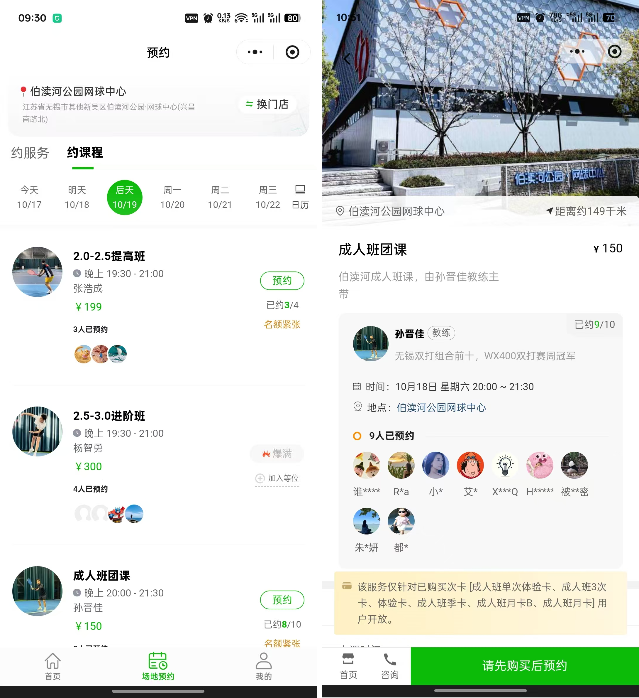 ✅ 课程预约前台可显示已预约客户信息,可设置显示范围