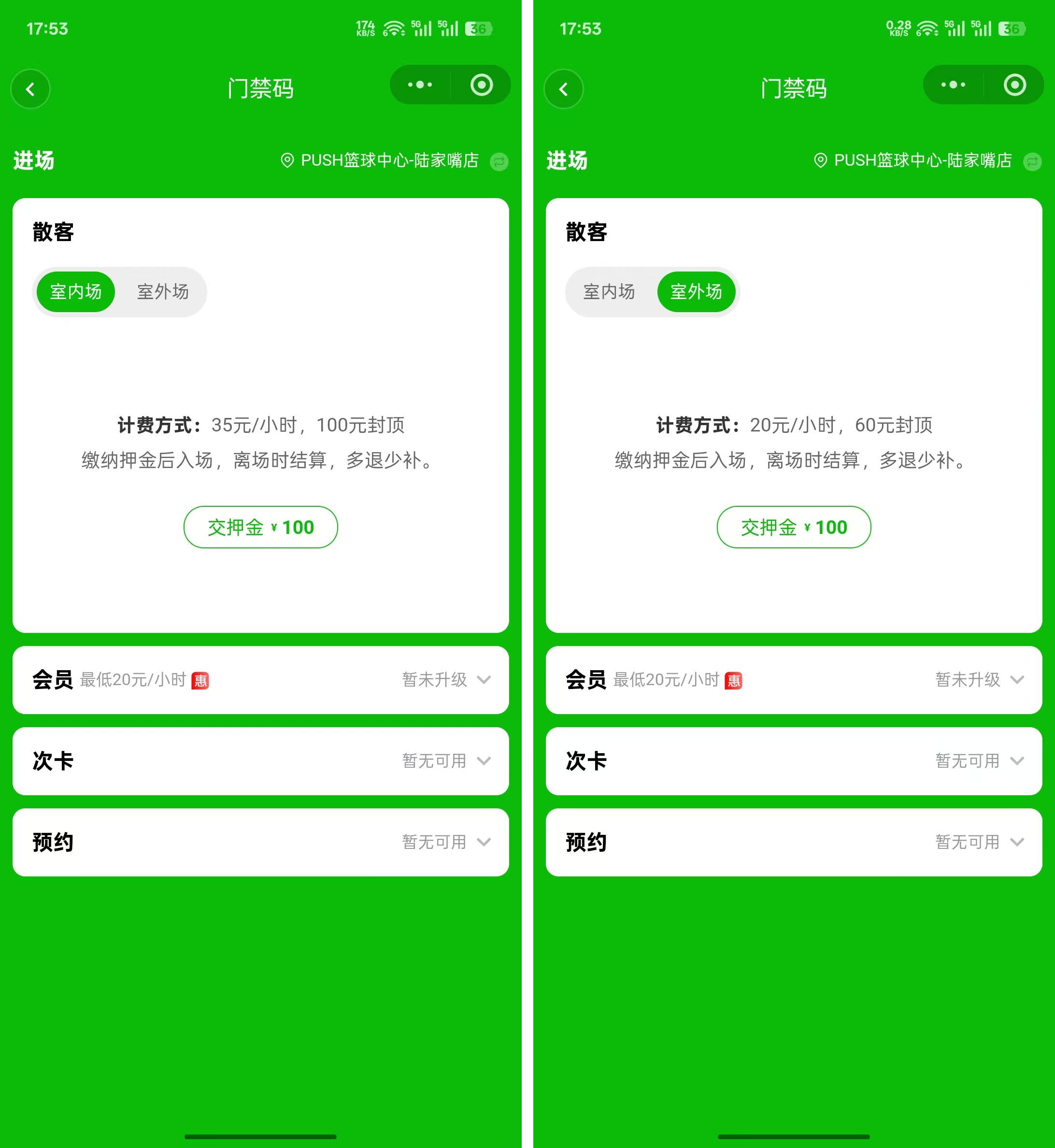 支持的场景:门店有多个不同的分场馆,且计价方式不同时适配。