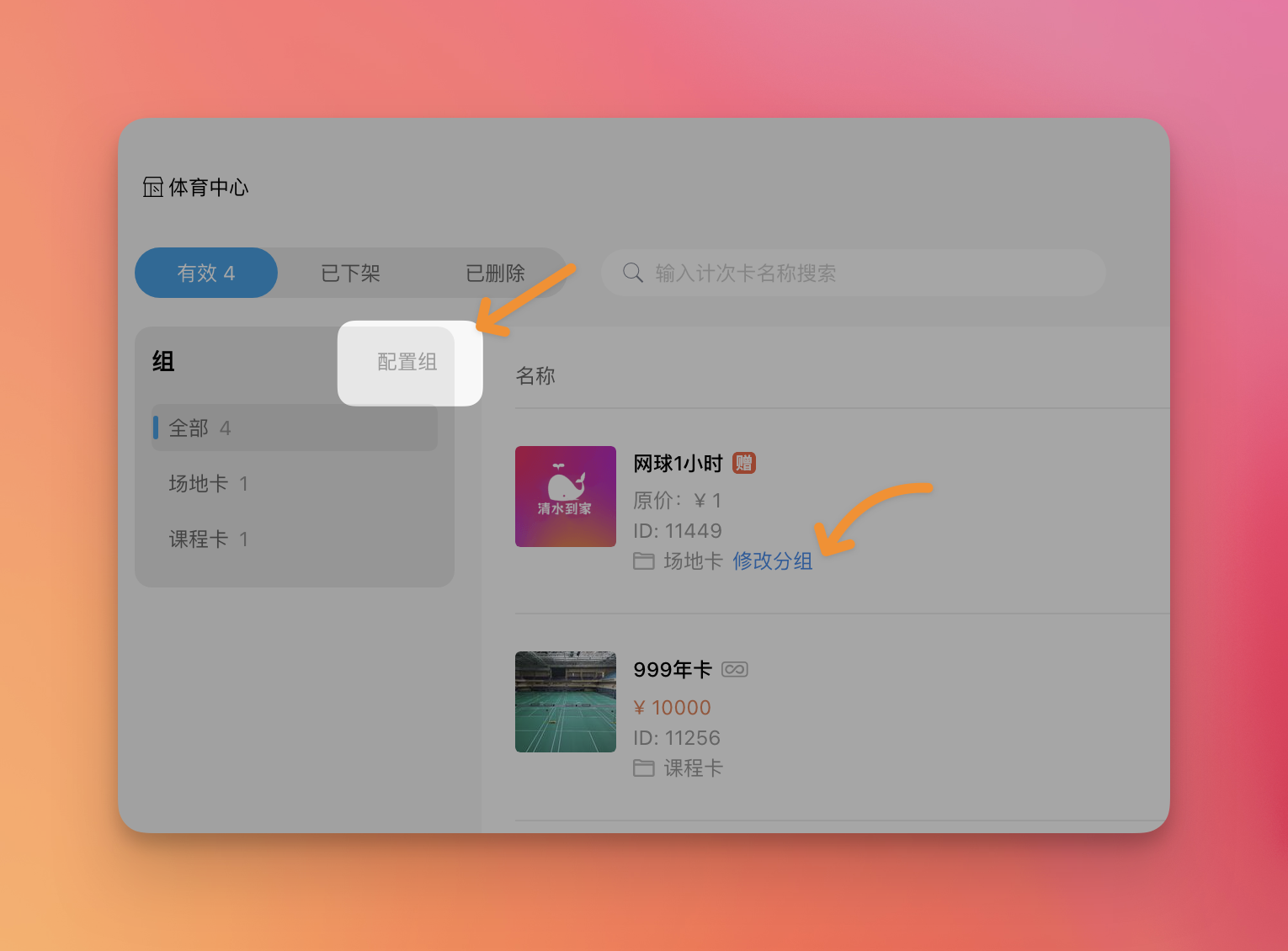 新增次卡分组功能。支持按课程类型、使用场景创建分组,实现次卡资源的分类精细化管理效率。
