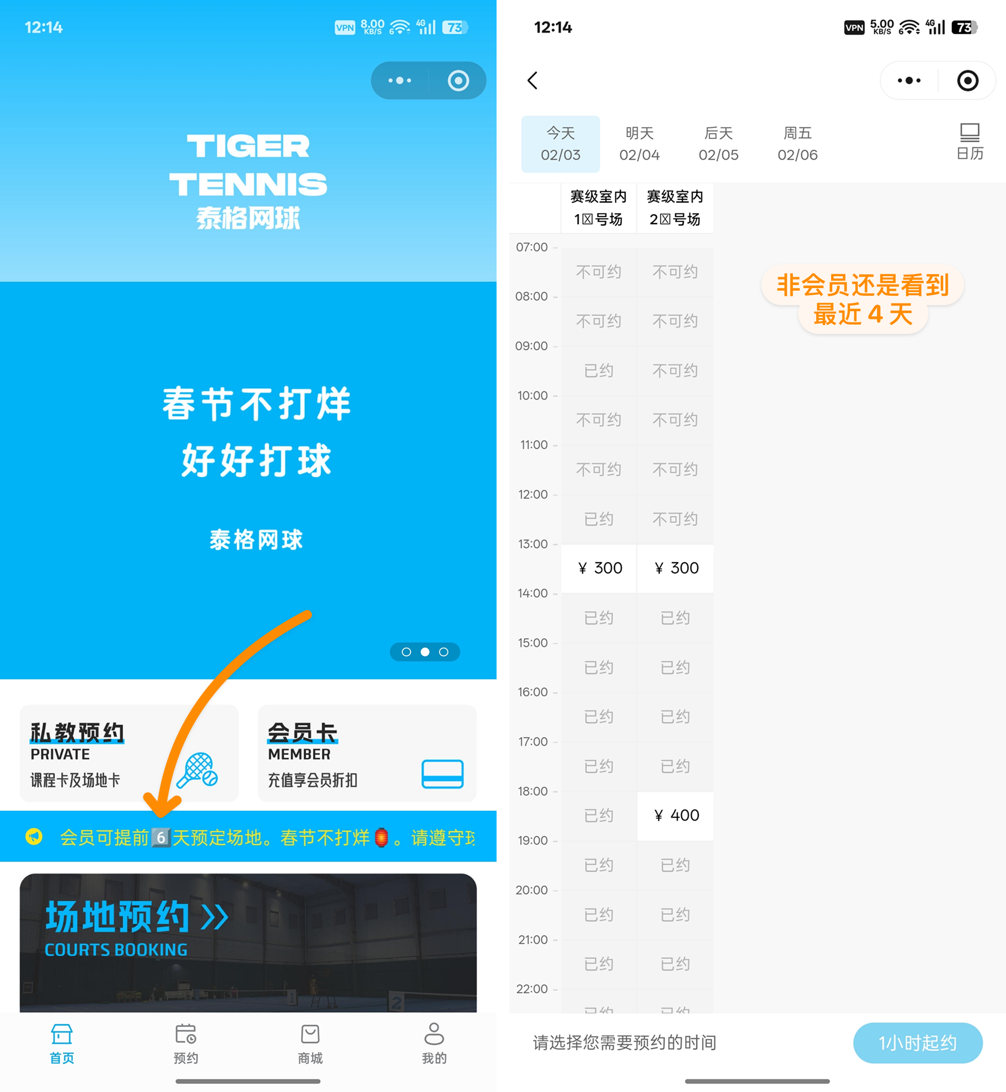 ✅ 支持会员提前预约场地