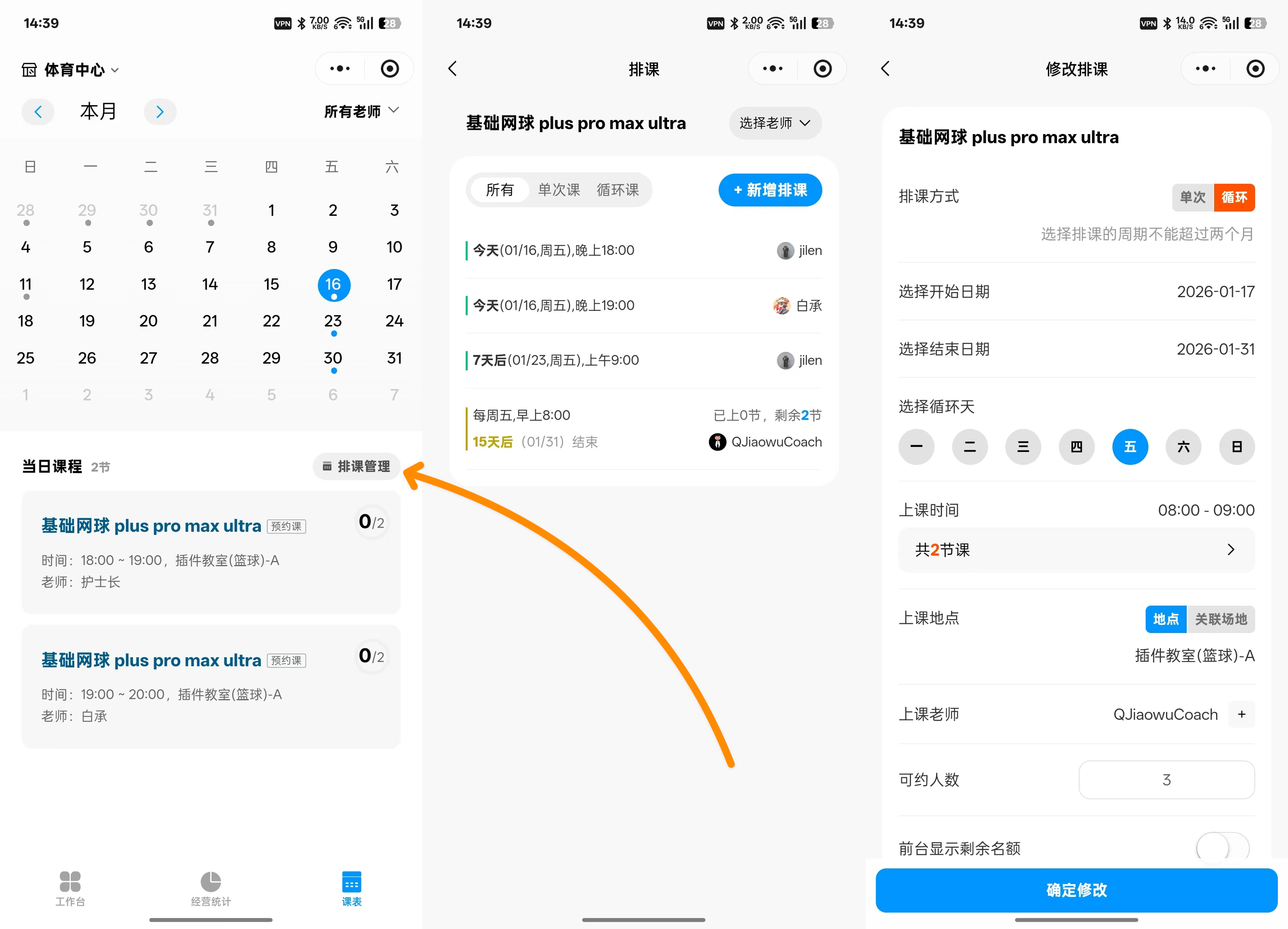 ✅ 课表兼容预约提醒规则(团课类型的),也支持在课表显示