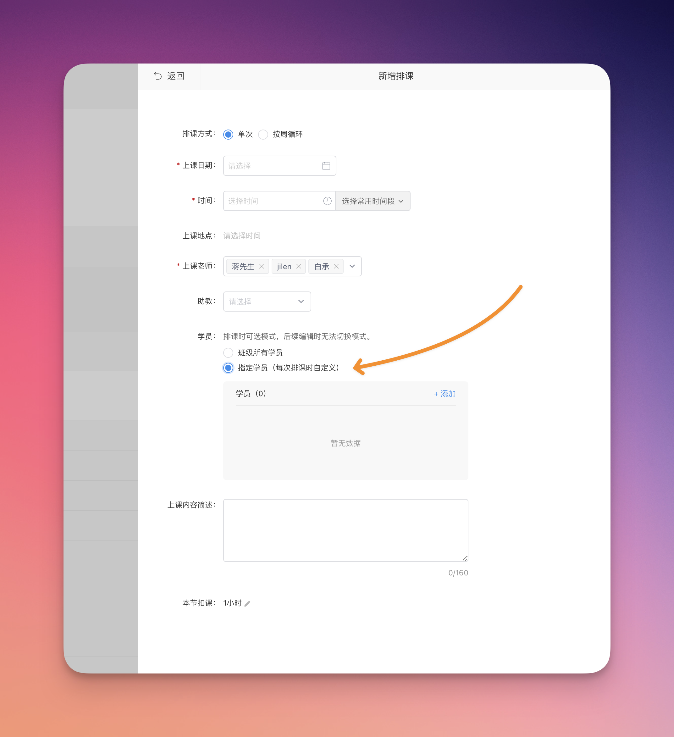 ✅ 教务排课支持特定学员