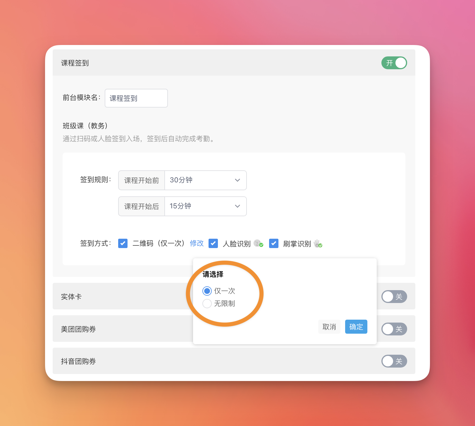 新增次卡分组功能。支持按课程类型、使用场景创建分组,实现次卡资源的分类精细化管理效率。